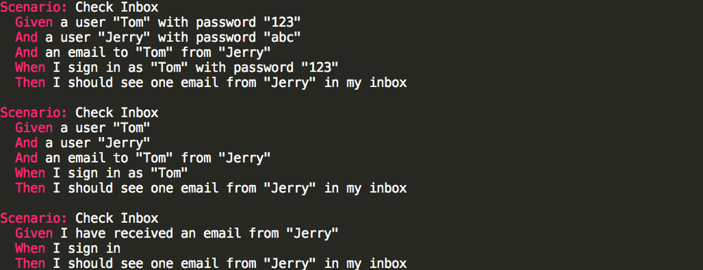 这一点似乎是跟第一点有些矛盾,但我们严格遵守BDD的格式要求还是可以做到的:
