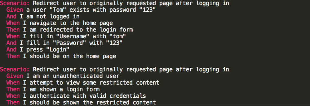 场景二:限制非法用户查看某些受限内容,BDD要强调什么(What),而不是怎么(How),第二个写的比较好。