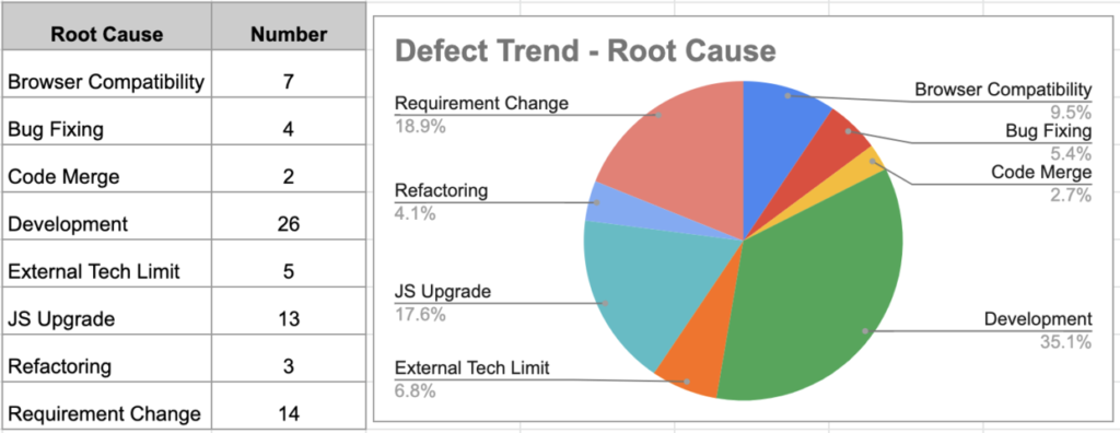 缺陷根因统计表和比例图