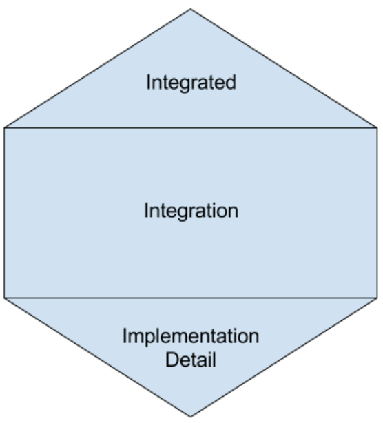 这个模型重点关注服务间的集成测试,两端的单元测试和UI层E2E测试较少。