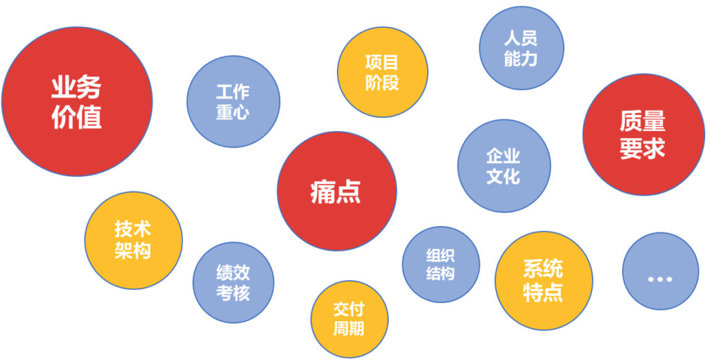 真正的痛点往往也是优先级最高,迫切需要解决的。那些可以通过测试策略的调整来解决的痛点,自然成为了关键的影响因素之一。比如,CI Pipeline出包太慢,为了提高出包的效率,一方面在Pipeline本身想办法,另一方面调整自动化测试的比例、执行频率等也是解决方案之一。