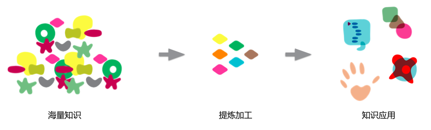 我们先来了解一下学习的过程。学习面对的是海量的知识,我们需要从中挑选自己需要的部分,进行加工和提炼,变成自己掌握的知识。到这是不是就结束了呢?并没有。还有最后非常关键的一步,那就是把学到的知识应用到不同的领域,或者总结分享出来供他人学习和使用。