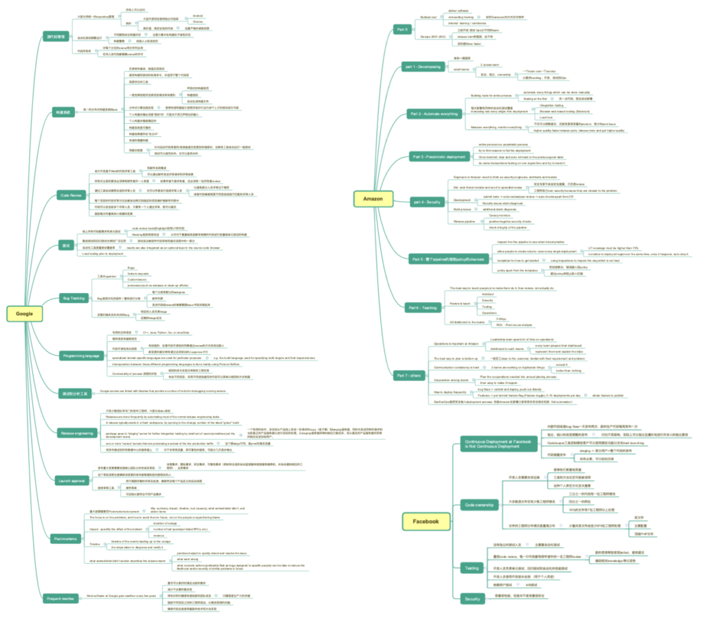 - Google、Amazon和Facebook都是对自动化测试要求比较高的,除了单元测试、集成测试、端到端测试外,还都非常关注自动化的性能测试,如负载测试是部署前必须完成的测试。