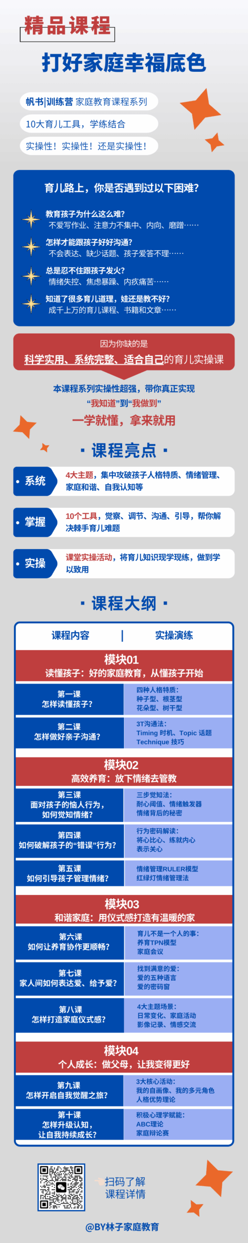 我这里有一系列的精品课程,从读懂孩子、高效养育、家庭和谐、个人成长四个维度,全方位帮你打造科学养育的系统。