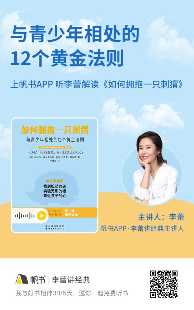 如果孩子真的变成了“刺猬”,该怎么办呢?我推荐大家一本书《如何拥抱一只刺猬:与青少年相处的12个黄金法则》。