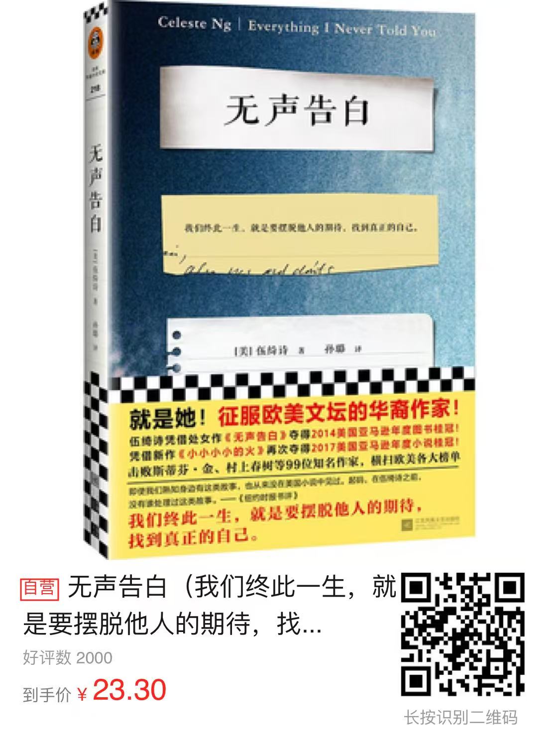 美籍华人作家伍绮诗耗时6年完成的长篇处女作《无声告白》以这样的方式开头,扣人心弦,让读者迫不及待一探究竟。